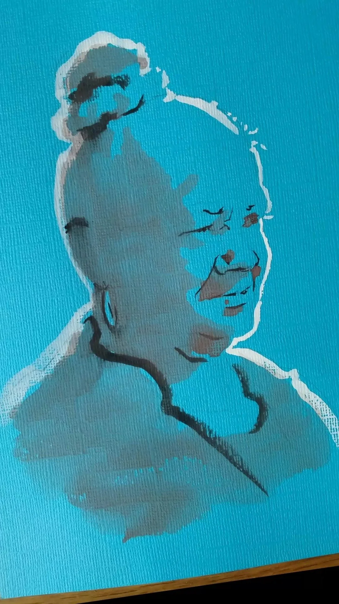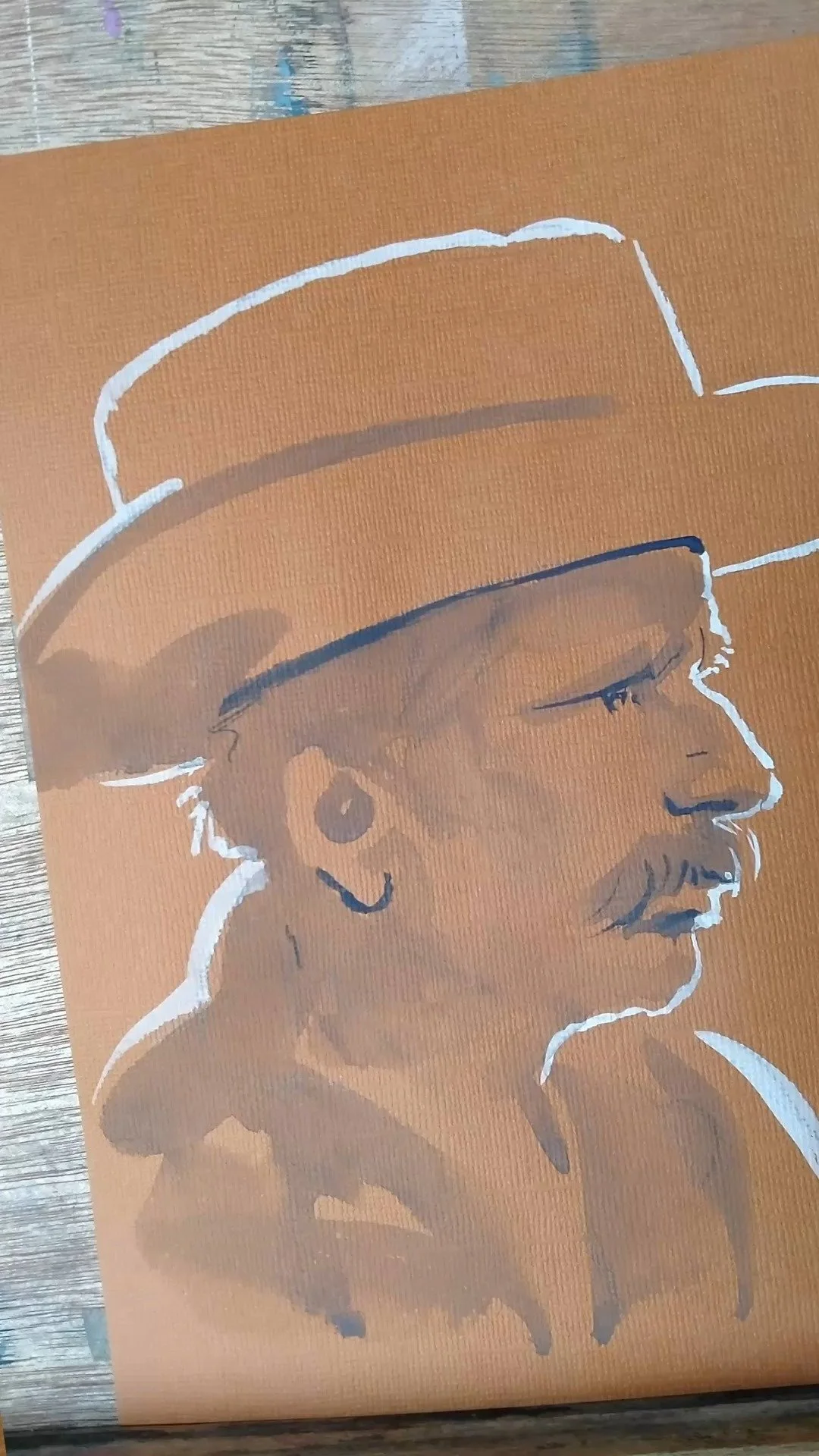 I start the sketch with watercolor pencil on thick, A5 paper. I finish the portrait with fountain pen ink and brush. After each one is completed, it needs a couple of minutes for the ink to dry before it can be handled.